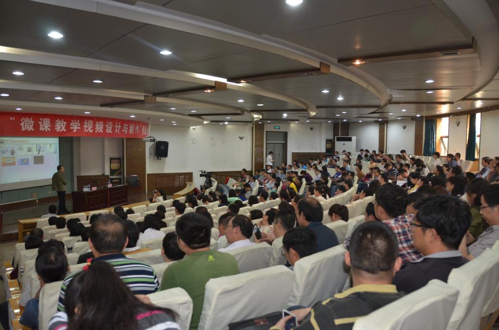 何聚厚老师结合自身多年教育信息化方面的研究以及DIY教学微视频的经验和体会,以深厚的专业知识和生动的语言,从现代信息技术应用于课堂教学的热点讲起,向大家详细介绍了微课的概念、选题,微课视频的设计原则、制作方法及制作中应注意的问题。在讲座中还穿插了PPT制作,基于问题导向和任务驱动的教学策略设计,以及不同场景下多种教学方法应用等多方面的知识。同时就如何实现教学微视频和课堂教学的有效融合以及SPOC课程教学模式与参会教师进行了深入交流,对教师在制作教学微视频过程中可能遇到的问题进行了分析、讲解,诠释了每位老师都可以像自主备课一样轻松制作教学微视频的理念。